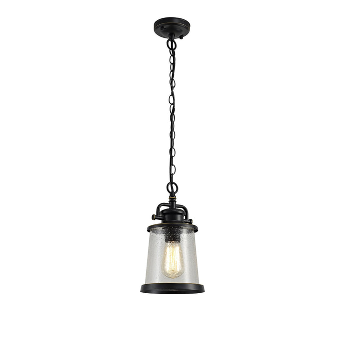 Brad Outdoor Pendant Black/Gold With Seeded Clear Glass