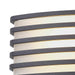 Bagen is a collection of IP54 wall lamps available in three colour finishes. The horizontal lined pattern of the framework creates a decorative aestheticaround the opal diffuser which conceals and protects the E27 lamp holder. This design blends harmoniously with any outdoor setting.