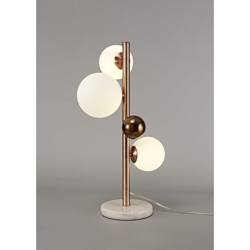Nelson LightingIn stockRavenna Table Lamp 3 Light Antique Copper/Opal & Copper GlassLength: 340mmWidth: 290mmHeight: 600mmItem Nett Weight: 3.1kgEnergy Class: A++ to ...