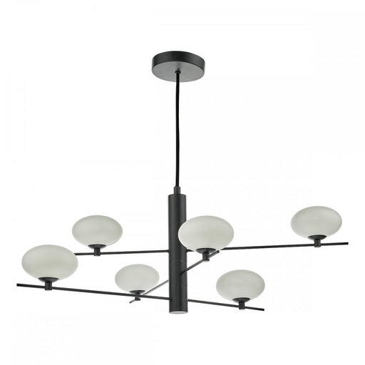 Dar JAS0622 Jasper 6 Light Pendant Matt Black Opal Glass