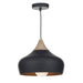 Matt black metal and wood pendant. Black braided cable. Height adjustable at point of installation.