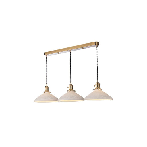 Dar Wisebuys HAD3640-10 Hadano 3 Light Bar Pendant Natural Brass & Ceramic Shallow Shade