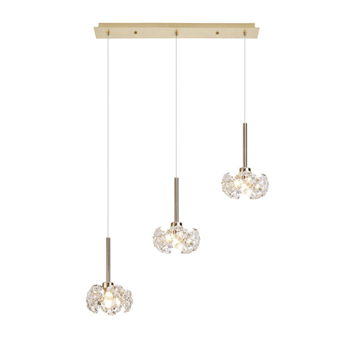 Nelson Lighting NLK08899 Bulge 3 Light Linear Pendant French Gold Crystal