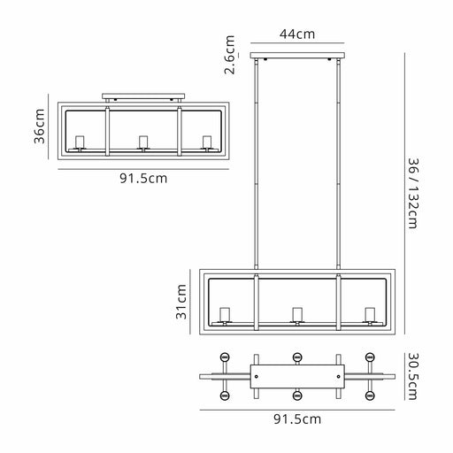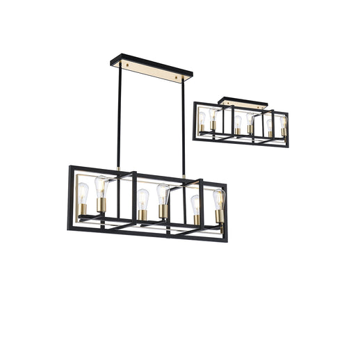 Nelson LightingIn stockNL85839 Ebbole 6 Light Pendant Satin Black Champagne GoldLength: 915mmWidth: 305mmMinimum Drop: 360mmMaximum Drop: 1320mmItem Nett Weight: 6.26kgBu...
