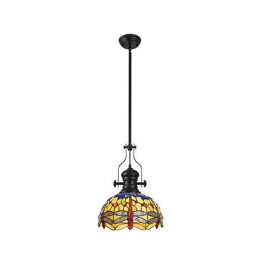 Nelson Lighting NLK15079 Louis, Heidi 1 Light Pendant Matt Black Orange/Blue
