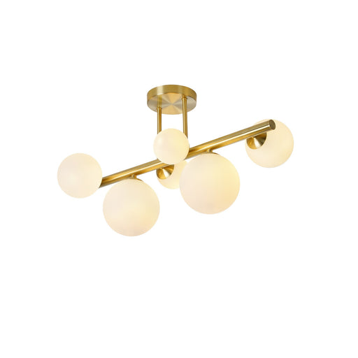 Nelson Lighting NL9323/OP9 Safady 6 Light Ceiling Light Satin Gold Opal
