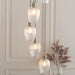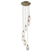 120654 7 Light Pendant Antique Brass Plate & Clear Ribbed Glass