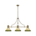 Louis/Umbrian 3 Light Telescopic Pendant With 30cm Tiffany Shade Antique Brass/Green/CRome/Crystal