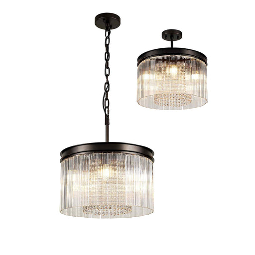 Nelson Lighting NLK00279 Azure 3 Light Semi Ceiling With Tiffany Shade 40cm Shade White/Grey/Black/Clear Crystal/Aged Antique Brass