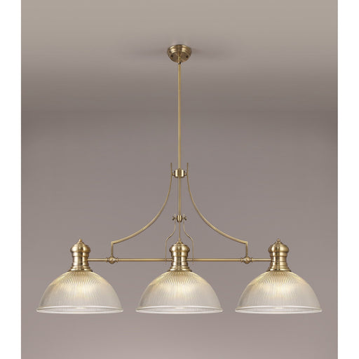 Nelson Lighting NLK03589 Louis 3 Light Telescopic Pendant With 38cm Dome Glass Shade Antique Brass/Clear