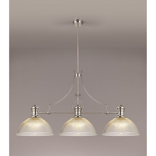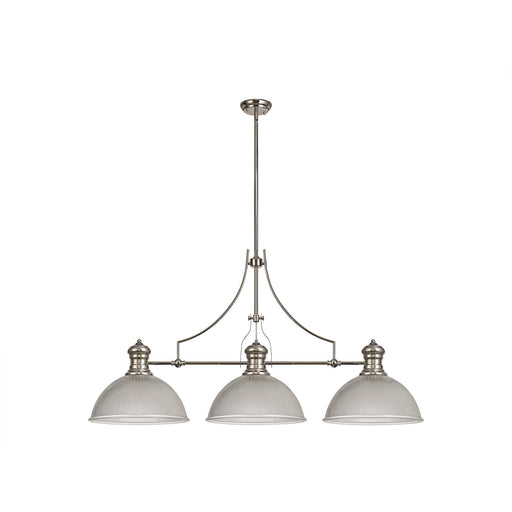 Nelson Lighting NLK03709 Louis 3 Light Telescopic Pendant With 38cm Dome Glass Shade Polished Nickel/Clear