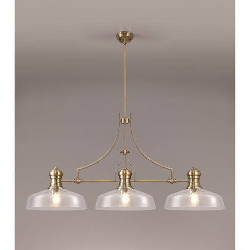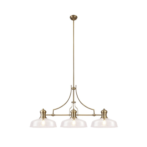 Nelson Lighting NLK04679 Louis Linear Pendant With 38cm Flat Round Shade Antique Brass/Clear Glass