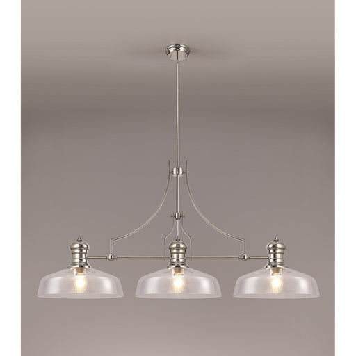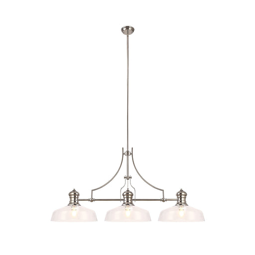 Nelson Lighting NLK04819 Louis Linear Pendant With 38cm Flat Round Shade Polished Nickel/Clear Glass