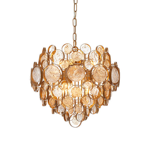 Endon 91989 6 Light Pendant Antique Gold Paint, Clear & Amber Glass