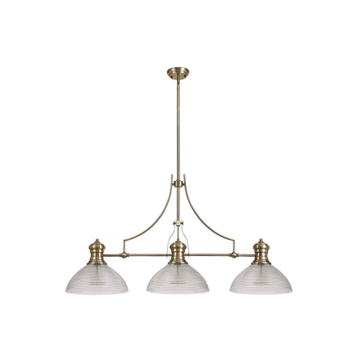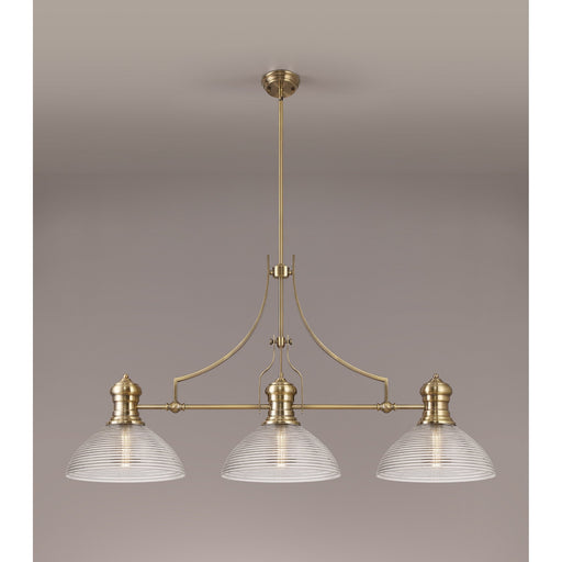 Nelson Lighting NLK03629 Louis 3 Light Telescopic Pendant With 33.5cm Prismatic Glass Shade Antique Brass/Clear