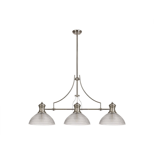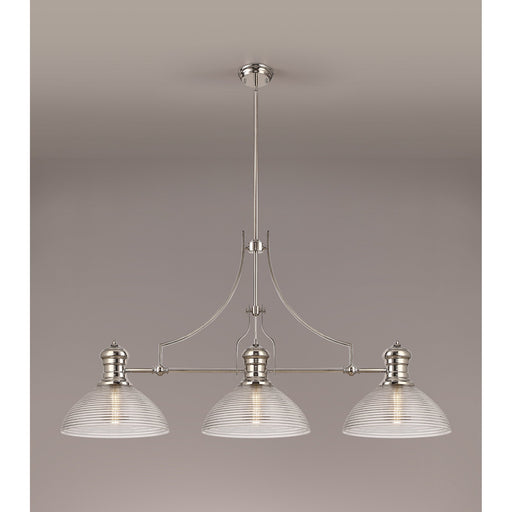 Nelson Lighting NLK03749 Louis 3 Light Telescopic Pendant With 33.5cm Prismatic Glass Shade Polished Nickel/Clear