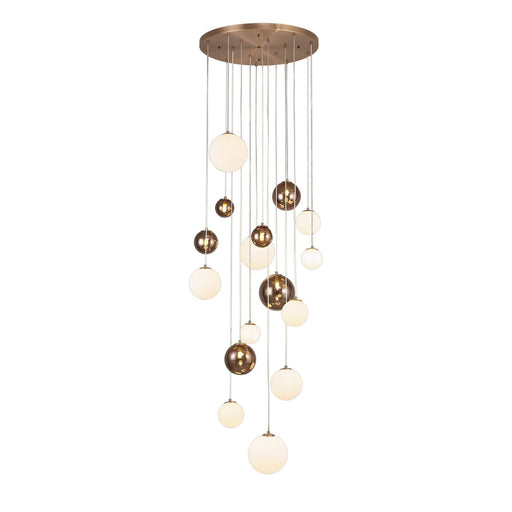 Nelson Lighting NL76679 Ravenna Pendant 16 Light Antique Copper/Opal & Copper Glass