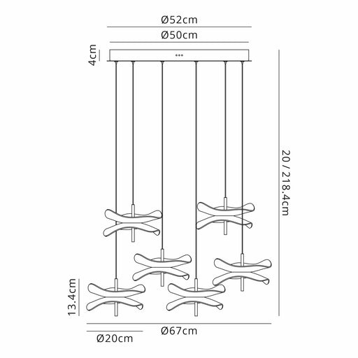 Nelson LightingIn stockNL73399 Padwa 6 LED Round Pendant Polished ChromeDiameter: 670mmMinimum Drop: 200mmMaximum Drop: 2184mmItem Nett Weight: 4.48kgBulb: 6 x 36W Integr...