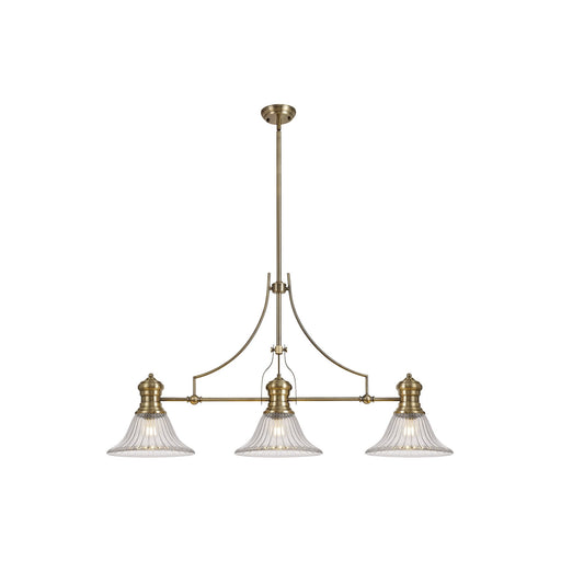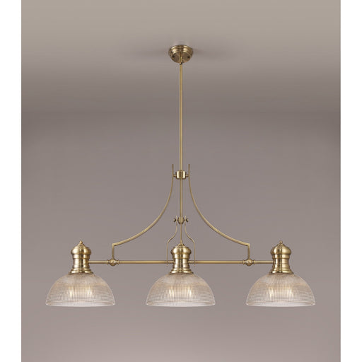 Nelson Lighting NLK03639 Louis 3 Light Telescopic Pendant With 30cm Prismatic Glass Shade Antique Brass/Clear
