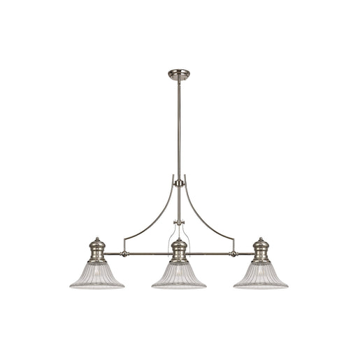 Nelson Lighting NLK04839 Louis Linear Pendant With 30cm Flat Round Patterned Shade Polished Nickel/Clear Glass