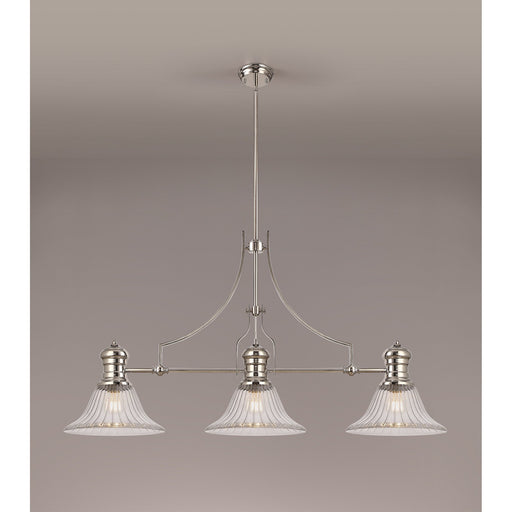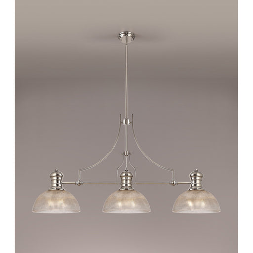 Nelson Lighting NLK03759 Louis 3 Light Telescopic Pendant With 30cm Prismatic Glass Shade Polished Nickel/Clear