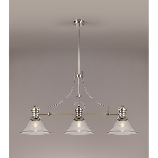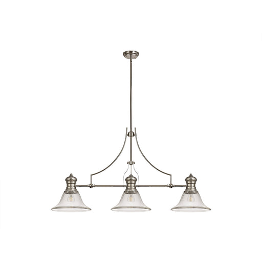Nelson Lighting NLK03679 Louis 3 Light Telescopic Pendant With 30cm Bell Glass Shade Polished Nickel/Clear