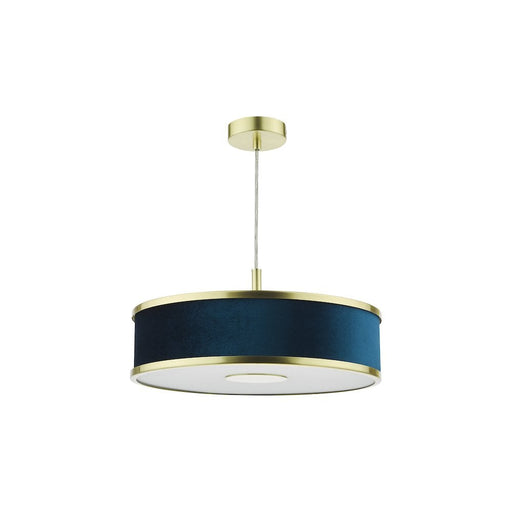 Dar Lighting GroupIn stockALV1023 Alvaro 3 Light Pendant Brushed Brass With Blue ShadeHeight: 110mmMin Height: 330mmMax Height: 1130mmDiameter: 400mmBulb: 3 x 60W E27 (ES)Bu...
