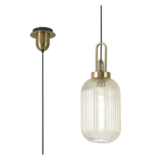 Nelson LightingIn stockNLK05439 Acme 1 Light Pendant Brass Gold Matt BlackDiameter: 200mmMinimum Drop: 640mmMaximum Drop: 2140mmItem Nett Weight: 1.7kgBulb: 1 x 60W E27 (...