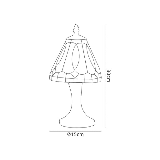 Nelson LightingOut of stockCami Tiffany Table Lamp White/Grey/Clear Crystal ShadeDiameter: 150mmHeight: 300mmItem Nett Weight: 1kgEnergy Class: A++ to DBulb: 1 x 20W E14 LED/...