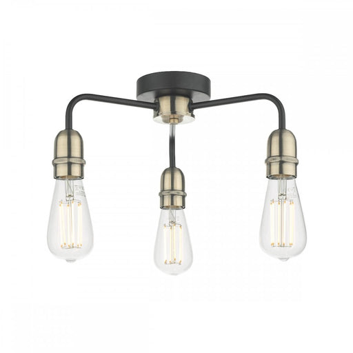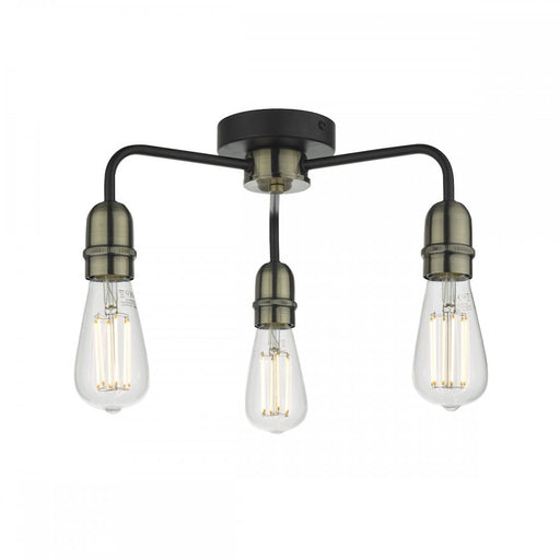 Dar WisebuysIn stockDar KIE5322 Kiefer 3 Light Flush Black And Antique BrassHeight: 16cmDiameter: 38cmBulb: 3 x 60W E27 (ES) GLSBulb Included: NOProduct Class: 2 - Dou...