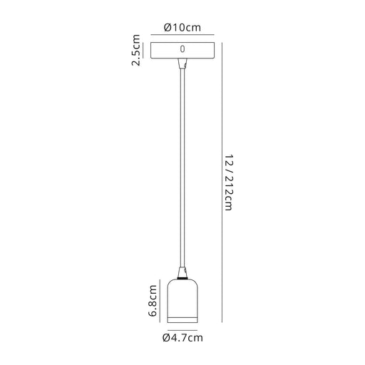 Nelson LightingIn stockNL85529 Raibon Suspension Kit Matt Black / Concrete / Black FabricDiameter: 100mmMinimum Drop: 135mmMaximum Drop: 2135mmItem Nett Weight: 0.4kgBulb...