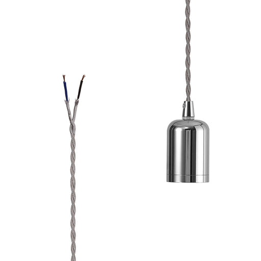 Nelson Lighting NL91449 Apollo E27 (Max 60W) Lampholder Chrome With 3m Silver Braided Twisted Cable & Deeper Shade Ring