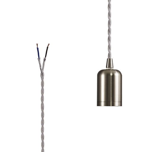 Nelson Lighting NL91459 Apollo E27 (Max 60W) Lampholder Brushed Nickel With 3m Silver Braided Twisted Cable & Deeper Shade Ring