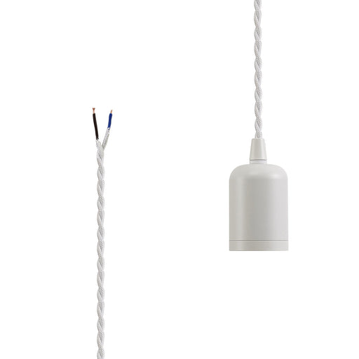 Nelson Lighting NL91499 Apollo E27 (Max 60W) Lampholder White With 3m White Braided Twisted Cable & Deeper Shade Ring