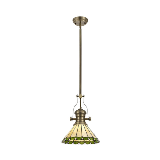 Nelson Lighting NLK04509 Louis/Umbrian 1 Light Telescopic Pendant With 30cm Tiffany Shade Antique Brass/Green/Chrome/Crystal