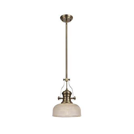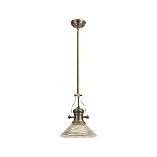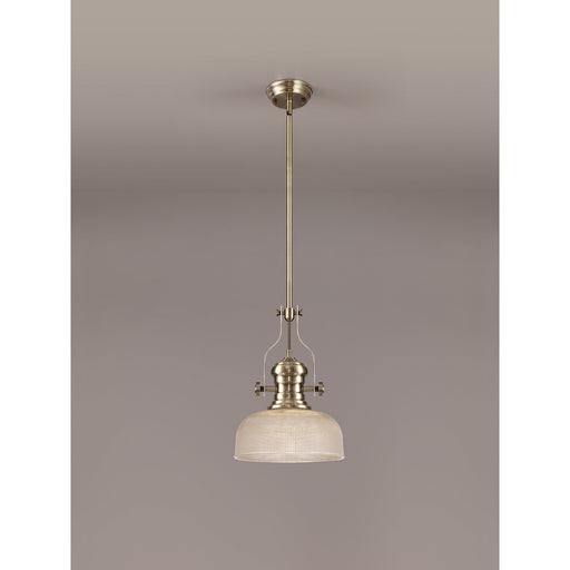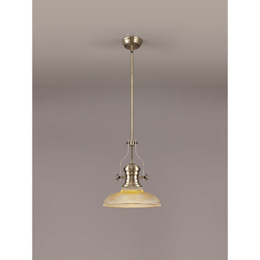 Nelson Lighting NLK01239 Louis 1 Light Telescopic Pendant With 26.5cm Prismatic Glass Shade Antique Brass/Clear