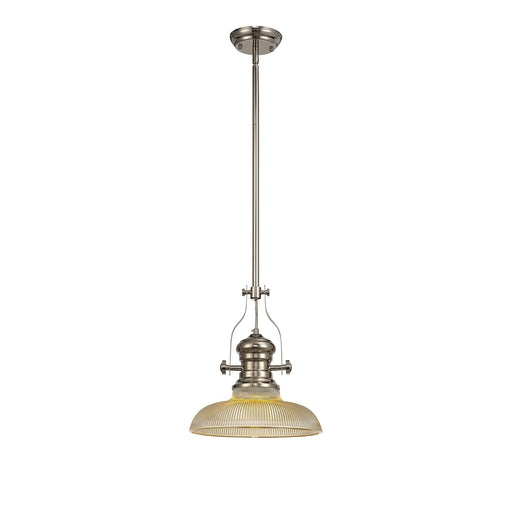 Nelson Lighting NLK01359 Louis 1 Light Telescopic Pendant With 26.5cm Prismatic Glass Shade Polished Nickel/Clear