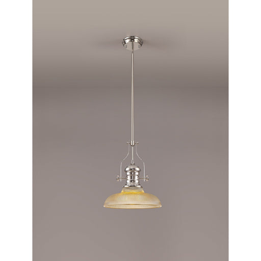 Nelson Lighting NLK01269 Louis 1 Light Telescopic Pendant With 30cm Round Glass Shade Polished Nickel/Amber