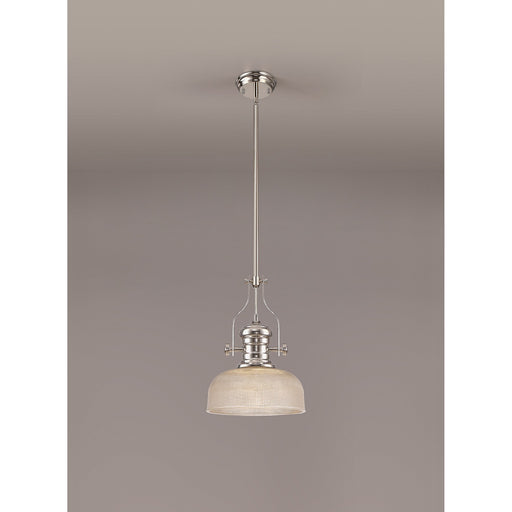 Nelson LightingOut of stockLouis 1 Light Telescopic Pendant With 26.5cm Prismatic Glass Shade Polished Nickel/ClearDiameter: 265mmMinimum Drop: 446mmMaximum Drop: 1596mmItem ...
