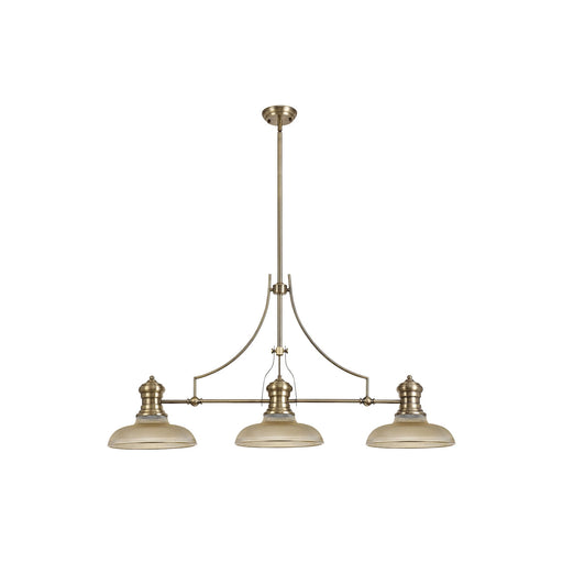 Nelson Lighting NLK03529 Louis 3 Light Telescopic Pendant With 30cm Round Glass Shade Antique Brass/Amber