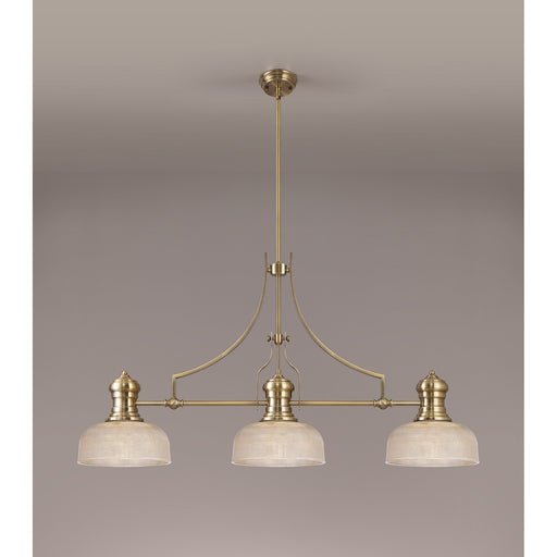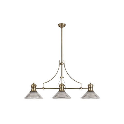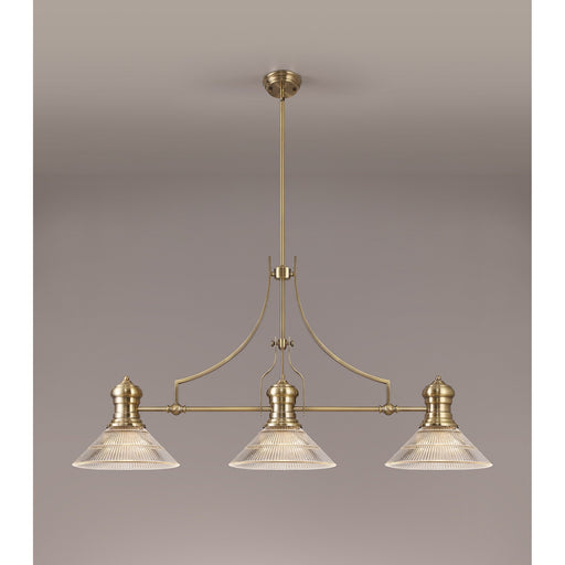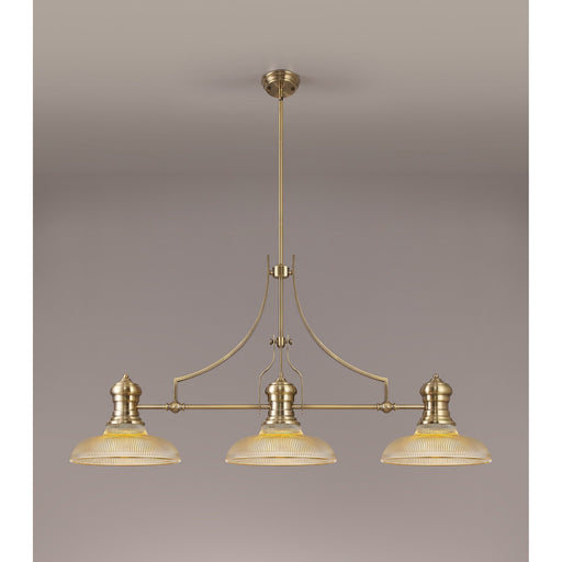 Nelson Lighting NLK03619 Louis 3 Light Telescopic Pendant With 26.5cm Prismatic Glass Shade Antique Brass/Clear