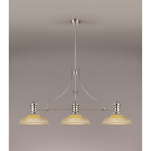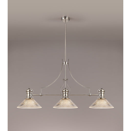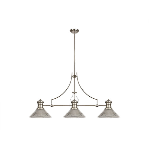 Nelson Lighting NLK03739 Louis 3 Light Telescopic Pendant With 26.5cm Prismatic Glass Shade Polished Nickel/Clear