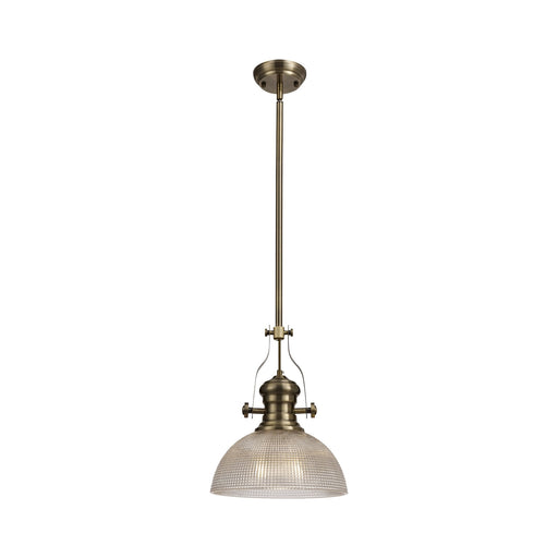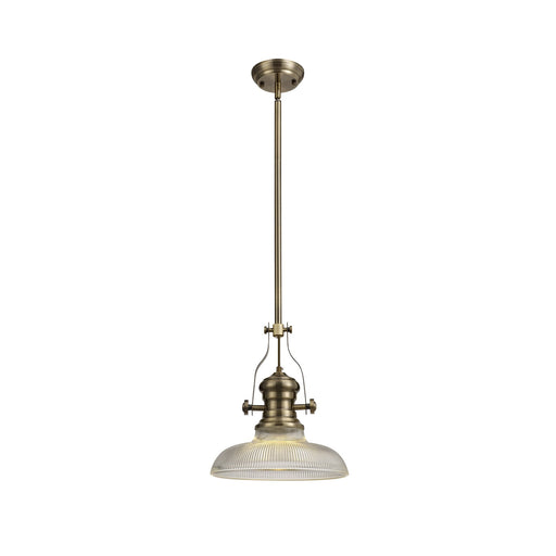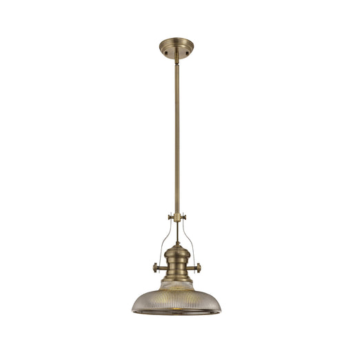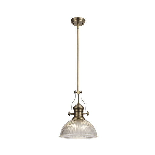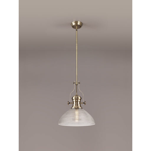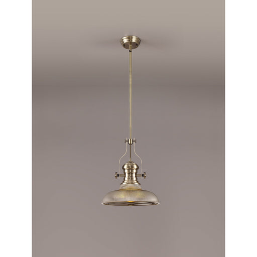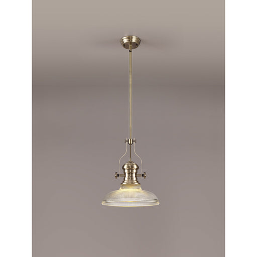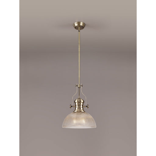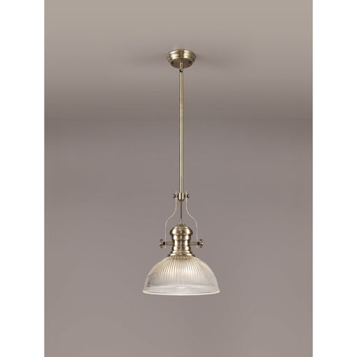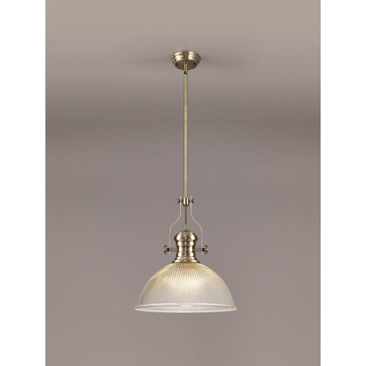 Nelson Lighting NLK01249 Louis 1 Light Telescopic Pendant With 33.5cm Prismatic Glass Shade Antique Brass/Clear