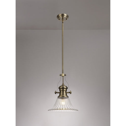 Nelson Lighting NLK01259 Louis 1 Light Telescopic Pendant With 30cm Prismatic Glass Shade Antique Brass/Clear