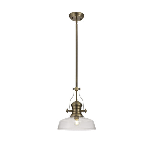 Nelson Lighting NLK01209 Louis 1 Light Telescopic Pendant With 38cm Dome Glass Shade Antique Brass/Clear
