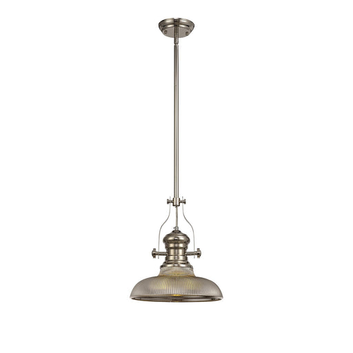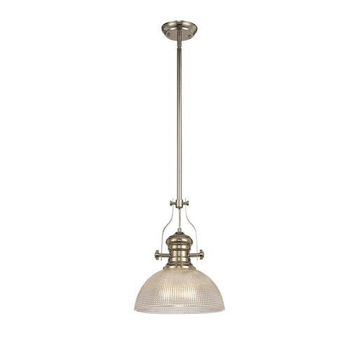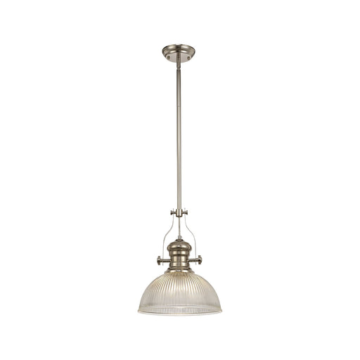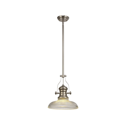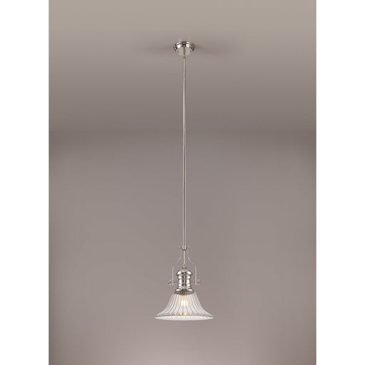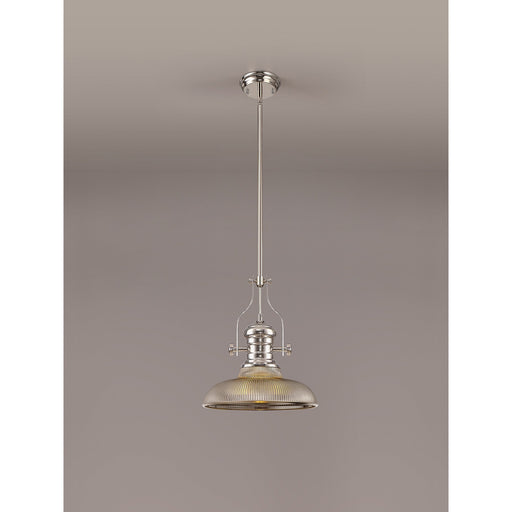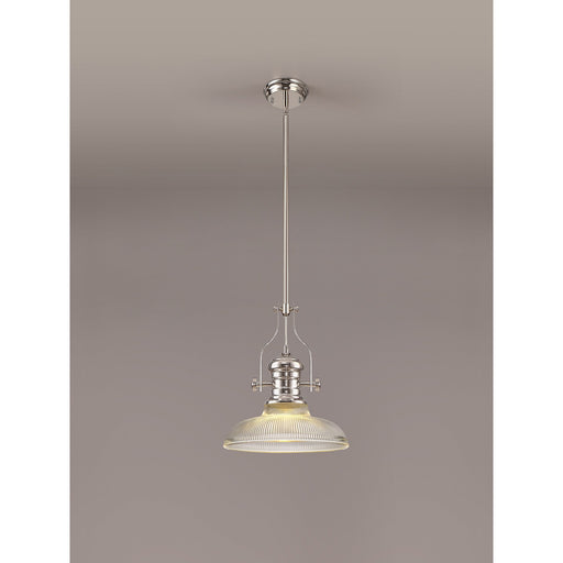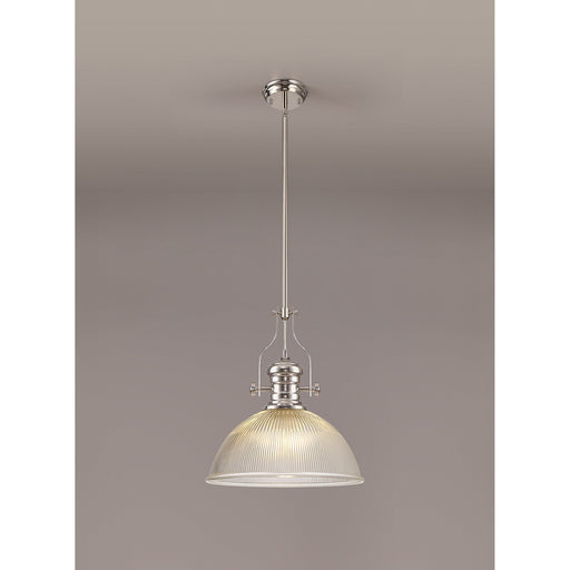Nelson Lighting NLK01379 Louis 1 Light Telescopic Pendant With 30cm Prismatic Glass Shade Polished Nickel/Clear