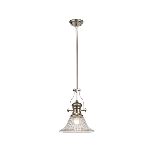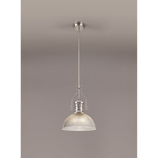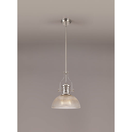 Nelson Lighting NLK01359 Louis 1 Light Telescopic Pendant With 26.5cm Prismatic Glass Shade Polished Nickel/Clear