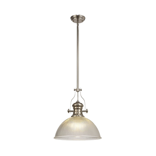 Nelson Lighting NLK01369 Louis 1 Light Telescopic Pendant With 33.5cm Prismatic Glass Shade Polished Nickel/Clear