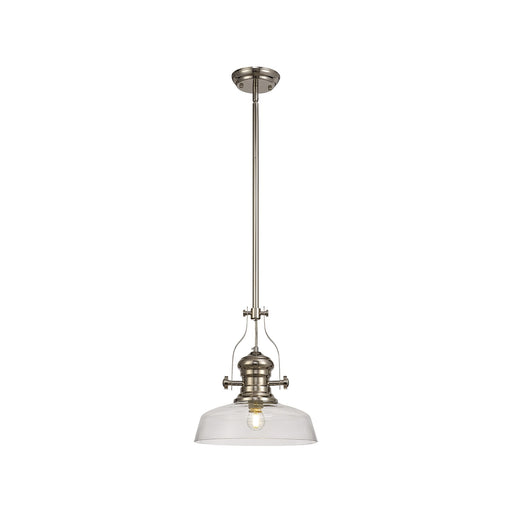 Nelson Lighting NLK01329 Louis 1 Light Telescopic Pendant With 38cm Dome Glass Shade Polished Nickel/Clear