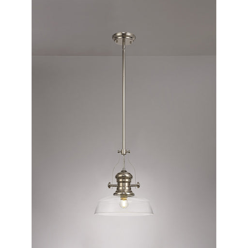 Nelson LightingIn stockLouis 1 Light Telescopic Pendant With 38cm Dome Glass Shade Polished Nickel/ClearDiameter: 380mmMinimum Drop: 500mmMaximum Drop: 1650mmItem Nett We...